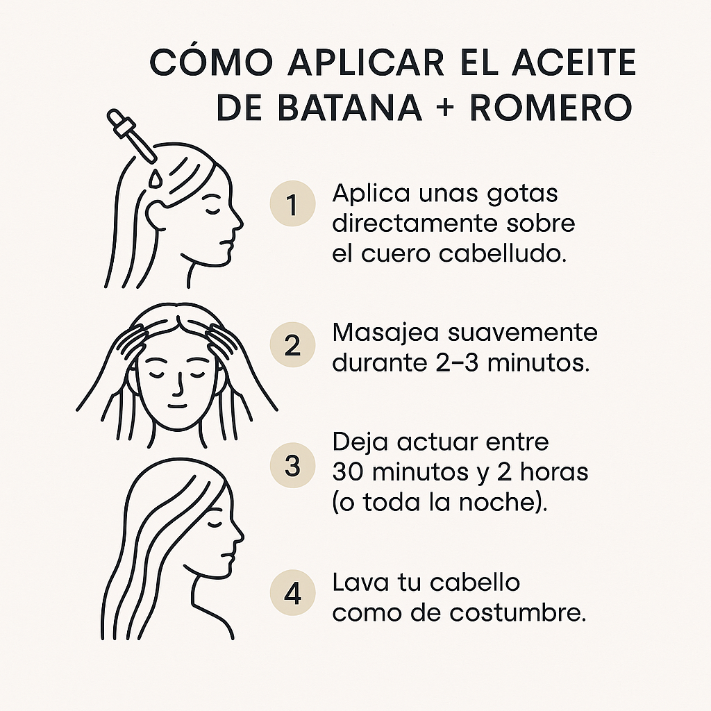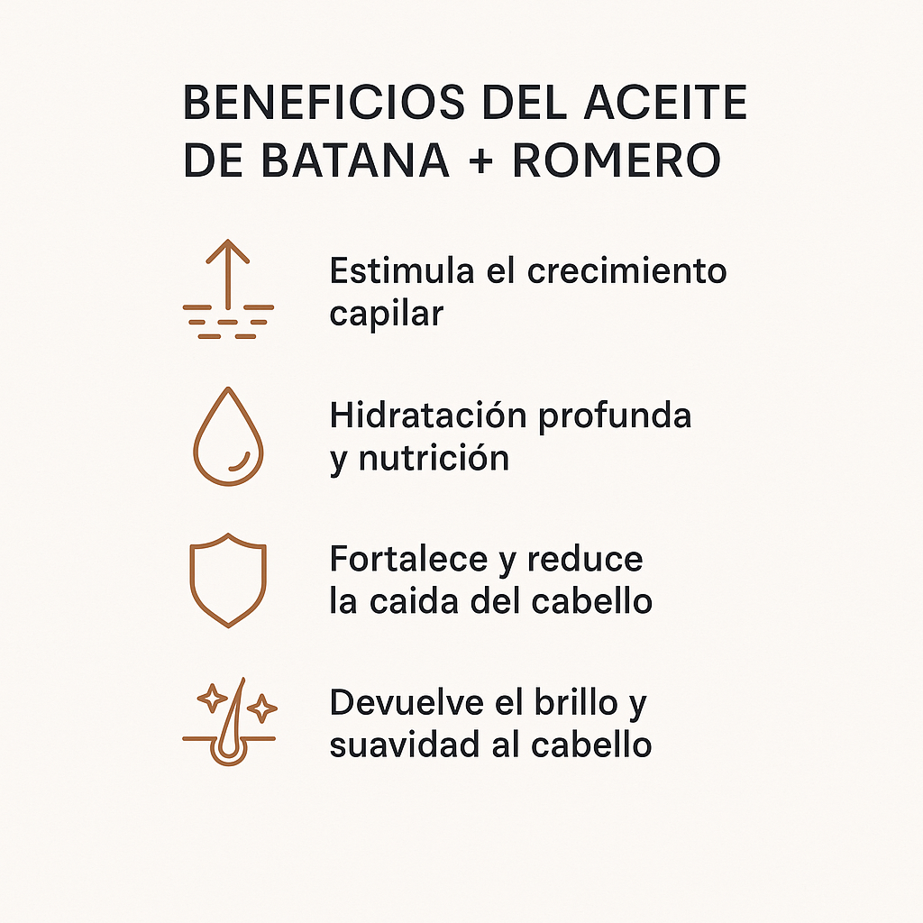 Sí. La combinación de aceite de batana y romero actúa directamente sobre el cuero cabelludo para nutrir los folículos, mejorar la microcirculación y estimular el crecimiento natural del cabello. El aceite de batana es rico en ácidos grasos esenciales y antioxidantes, que ayudan a reparar la fibra capilar dañada, mientras que el romero promueve el crecimiento y reduce la caída gracias a sus propiedades revitalizantes.
