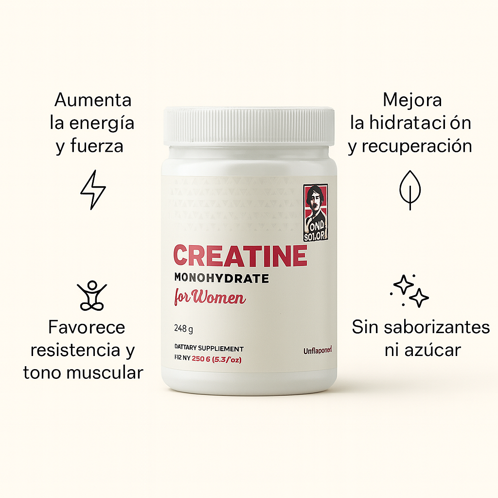 Una creatina monohidratada pura, formulada especialmente para mujeres que entrenan con propósito. Su fórmula sin sabor, sin azúcar añadida y con sello “Formulated in California”, está diseñada para aumentar la fuerza, mejorar el rendimiento y favorecer una recuperación más rápida sin añadir calorías ni aditivos innecesarios.