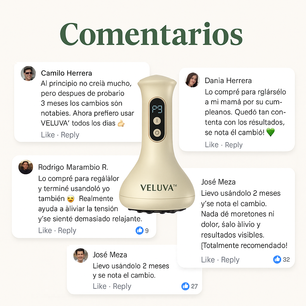 Te presento VELUVA™, el dispositivo que está transformando la forma en que mujeres y hombres cuidan su cuerpo y bienestar desde casa.