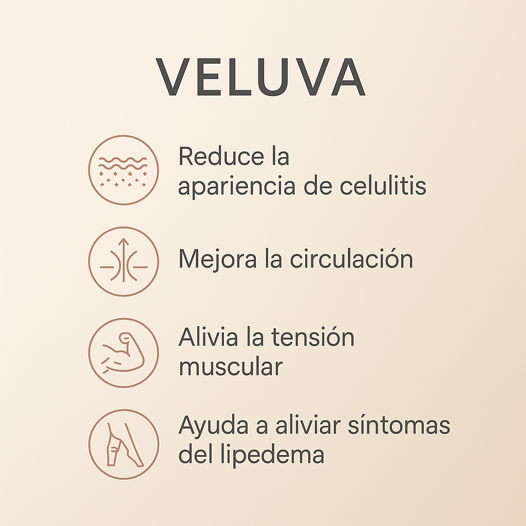 Sí 💚. VELUVA™ combina succión inteligente, calor terapéutico y luz roja para estimular la circulación, activar el drenaje linfático y mejorar la firmeza de la piel.